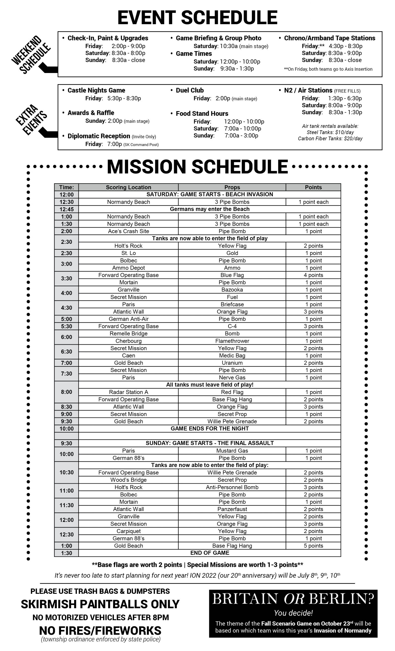 Join Skirmish and over 4,000 paintball players as we gather to recreate the Infamous World World II DDay. Play two days of scenario game paintball, camp on site and shop at the largest vendor show in the world of paintball. Plus, all registered ION players can battle from Castle to Castle in our FREE Castle Night game on Friday, July 9th. Will you storm the beaches with the Allied Troops to keep the Axis from advancing or will you help the Axis forces to keep the Allies from advancing?